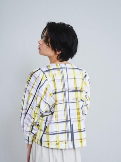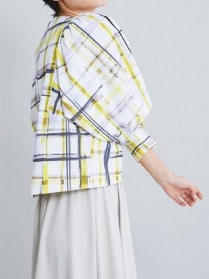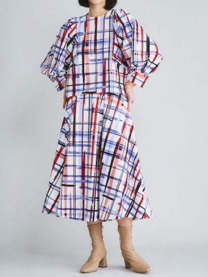 手描き風のアートなチェック柄に、カラフルなカラーの組み合わせが新鮮なトップス。