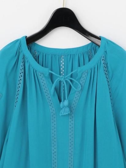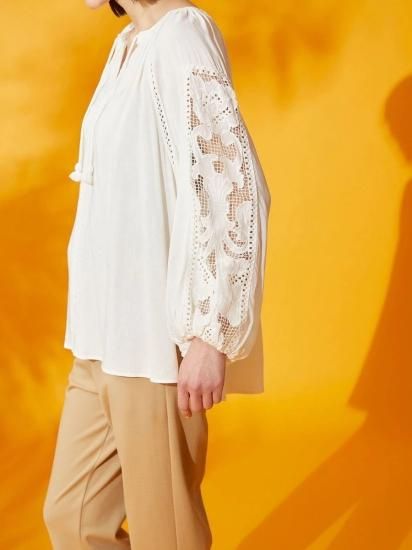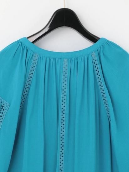 オリジナルのケミカルレースを袖に接ぎ、透かしを入れた清涼感のあるデザイン。