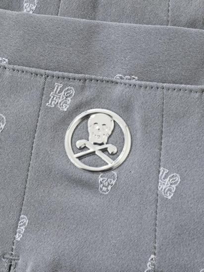 スカルフェイスとGOLFロゴを緻密なジャカード織りで表現した、クラシカルな新素材を採用しています。ベルトループにメタリックなサークルスカルチャーム、左モモにベルクロワッペン、ポケットにはロゴが刻印されたメタリックカラーボタンを配しました。