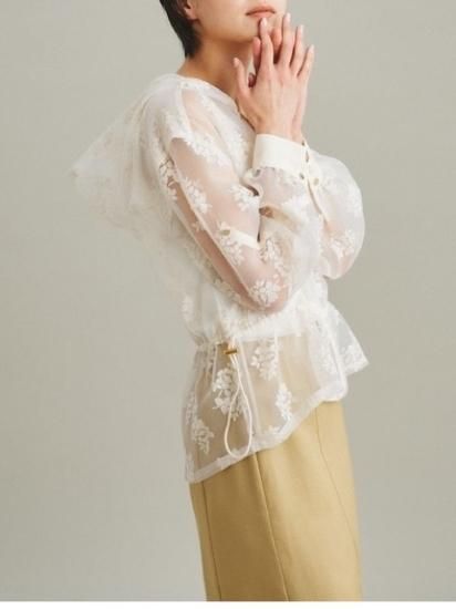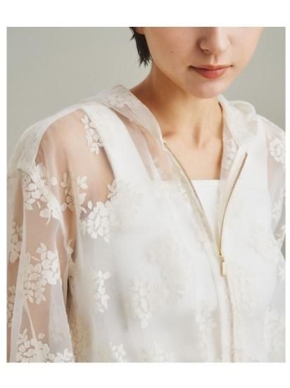 シアーな透け感が綺麗な春夏にぴったりなフードブルゾン。