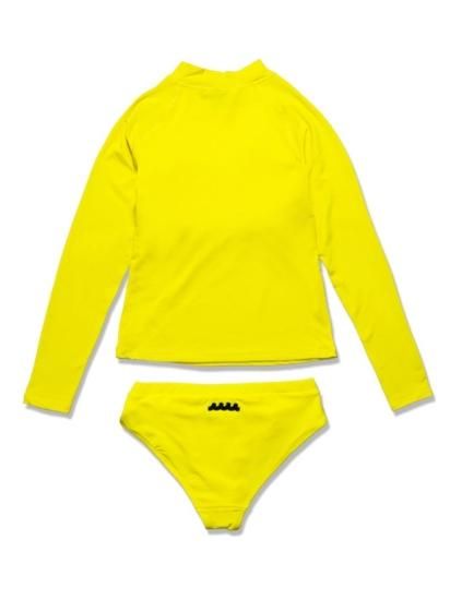 カップ付きラッシュガードにビキニボトムがセットになった、海やマリンアクティビティにぴったりなアイテム。