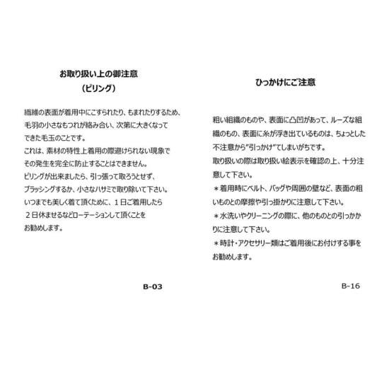 ※水洗いやクリーニングの際に、他のものとの引っ掛かりにご注意ください。