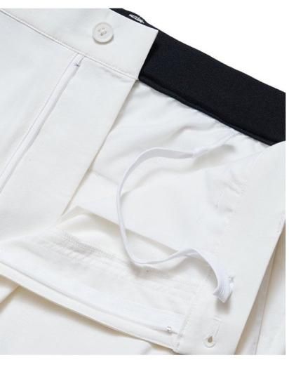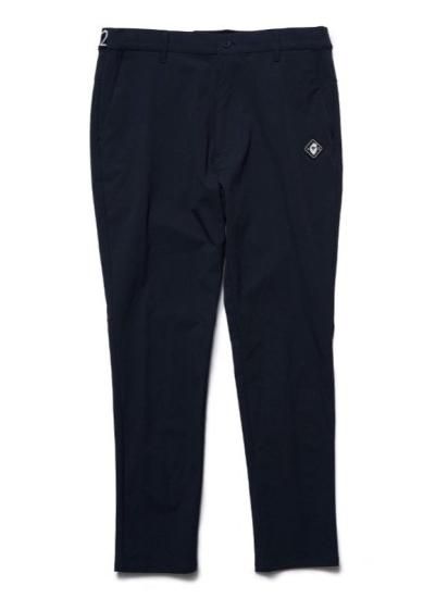 ウエスト後ろ部分がロゴの入ったリブ仕様で、ベルト無しでも着用可能なストレッチパンツ。