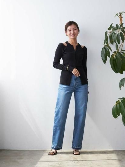 LEAのようなボーイズストレートに裾ほどきを施すことで、トレンド要素がありつつも、穿きやすさも兼ね備えた1本です。