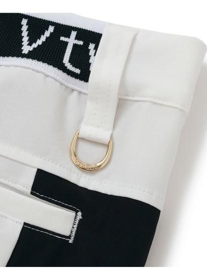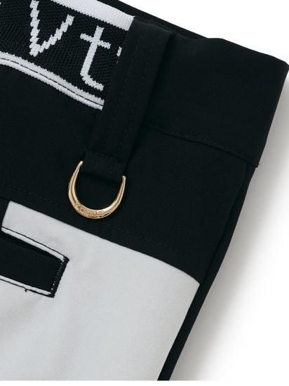 ウエストのバックにロゴ入りのリブを装着したショートパンツ。