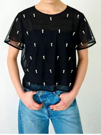 ビジューやパールをバランス良く散りばめた華やかなトップス。