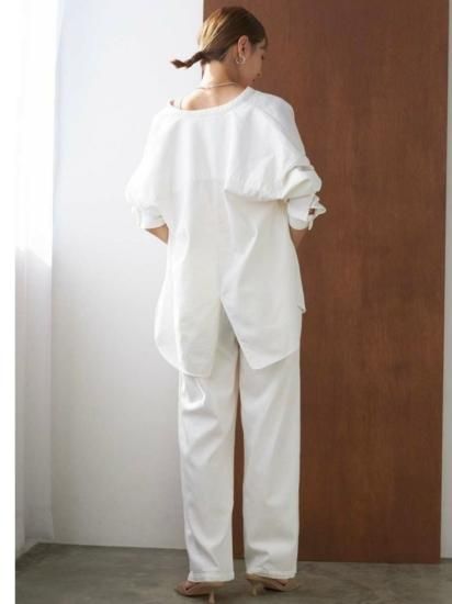 麻の節が残るナチュラルなホワイトは、浮いてしまう事なくコーディネートに馴染みます。透け防止加工を施しているため、インナーが透けにくくなっています。