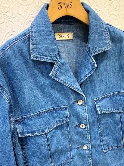 【YANUK】オープンカラーデニムシャツ(WOMEN)【BLUE】