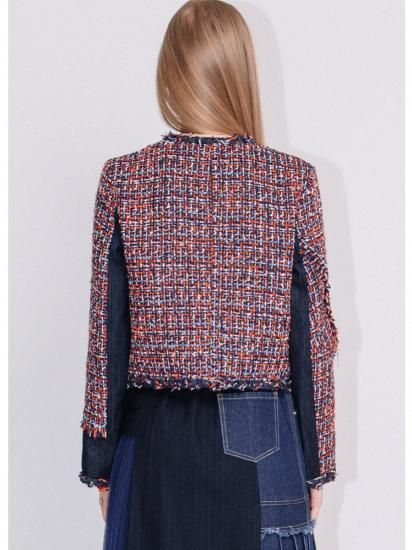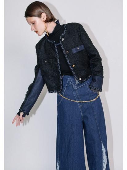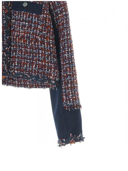 ツイードとデニムのコンビネーションが目を惹く、秋冬らしいコンパクトツイードジャケット。
