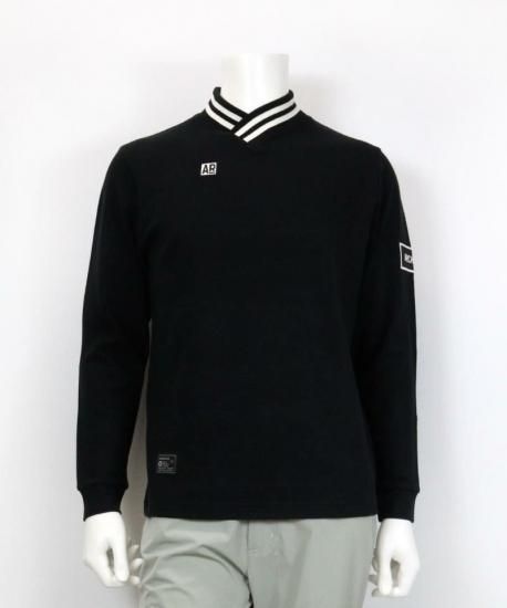 ・首回りはリブ素材のVネック+ダブルラインでカジュアルMIXに