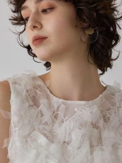 動いた時のフリンジの表情やスパンコールの輝きが目を引く、Diagramならではのテクニックが光る一着です。