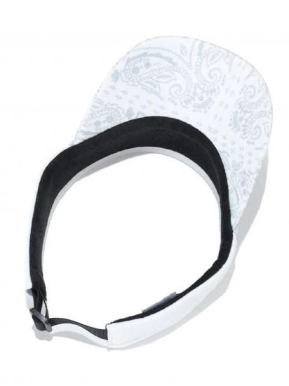 繊細なペイズリー柄にロゴプリントをミックスした、デザイン性と機能性を兼ね備えたサンバイザー。