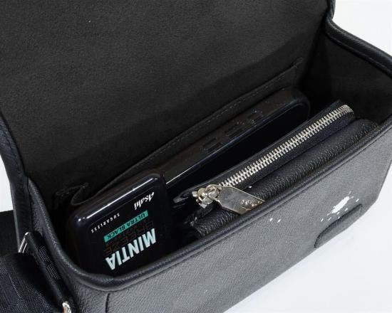 マグネット式のフラップでメイン収納スペースまで簡単にアクセスできます。コンパクトなサイズ感ながらマチをしっかり持たせることにより収納力も確保され、コーディネイトのアクセントとしても際立ちます。