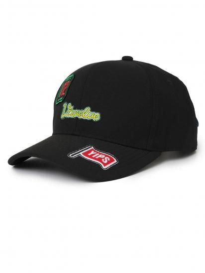 オリジナルのワッペンを全面に散りばめたキャップ。