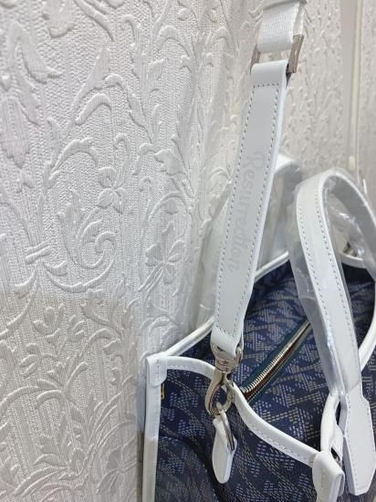 レザーには、ブランドロゴの箔押しを施し肩にかけるとアクセントになります。