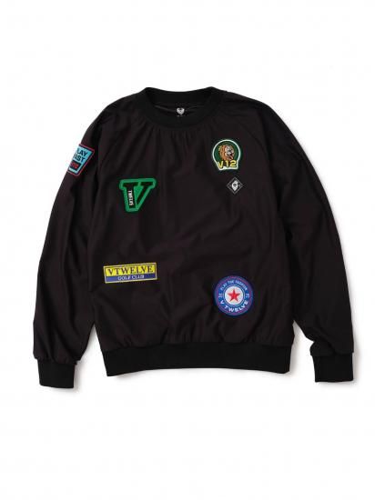 オリジナルのワッペンを全面に散りばめたジャケット。