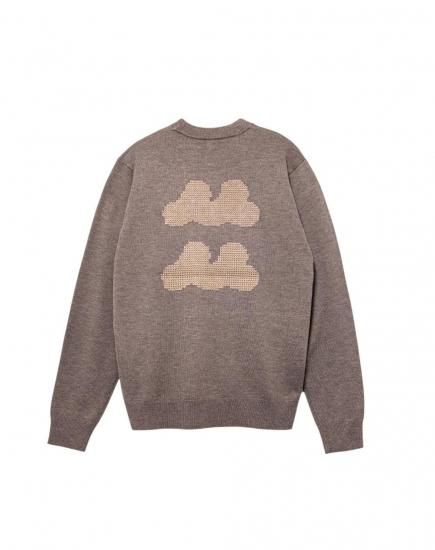 ハンドワークならではのロゴの風合いが魅力のクルーネックセーター。