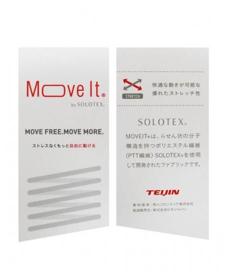 MOVEITはらせん状の分子構造を持つポリエステル繊維(PTT繊維)SOLOTEXを使用して開発されたファブリックです。快適な動きが可能な優れたストレッチ性を備えています。