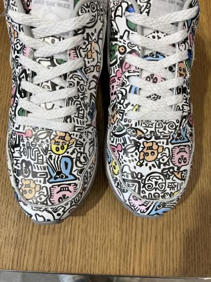 アッパーにはフェイクレザーを採用し、カラフルな人気グラフィックシリーズを敷き詰めることで、ポップなテイストの中に「SPARK(一瞬の閃き)」を際立たせています。