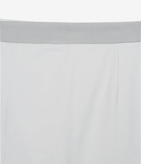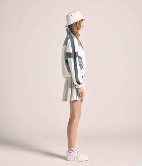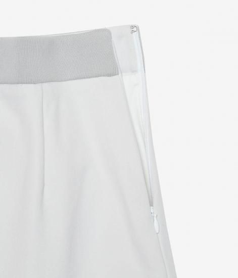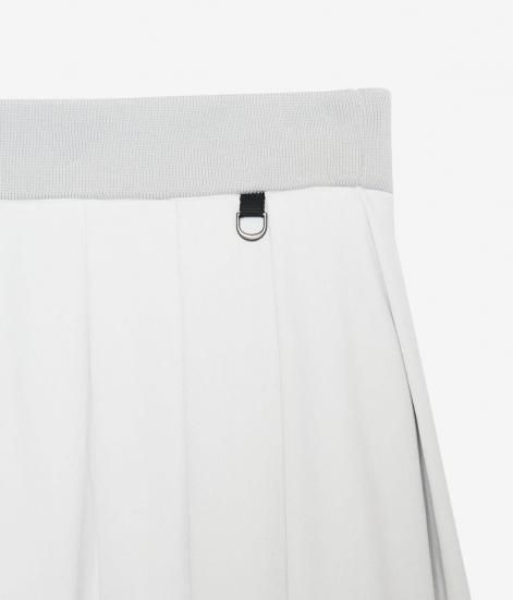 ウエスト部分には広めのリブを採用し、程よいホールド感と快適なフィットを実現。動くたびに軽やかに揺れるプリーツが、女性らしいエレガンスを演出します。さらに、リブラインのアクセントが全体を引き締め、クラシックかつスポーティーな印象に。