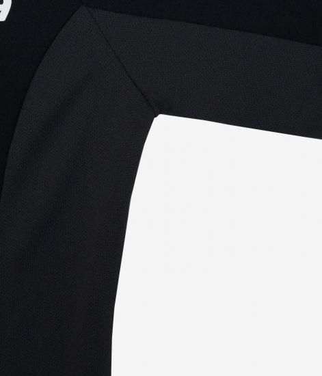 袖や身頃のパネル切替え部分には、吸水速乾性とストレッチ性を持つポリエステル製ピンメッシュ素材を使用。