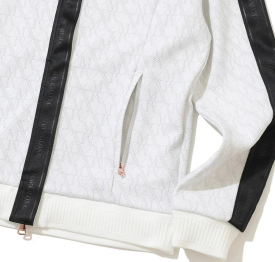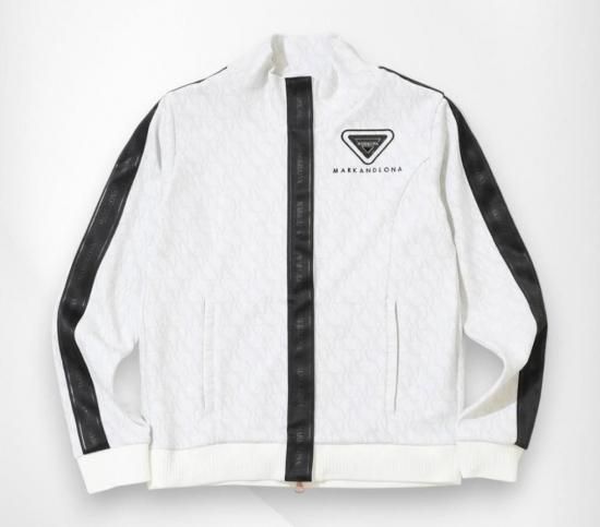 トライアングルモチーフをジオメトリックのジャカードで表現したトラックジャケット。