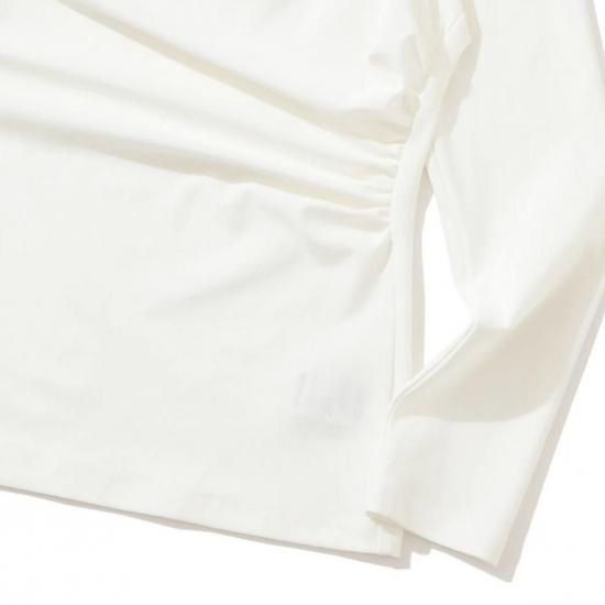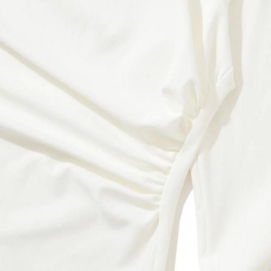 ・フロントの立体的なドレープデザインによる、モダンなシルエット