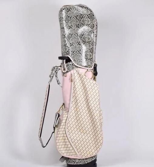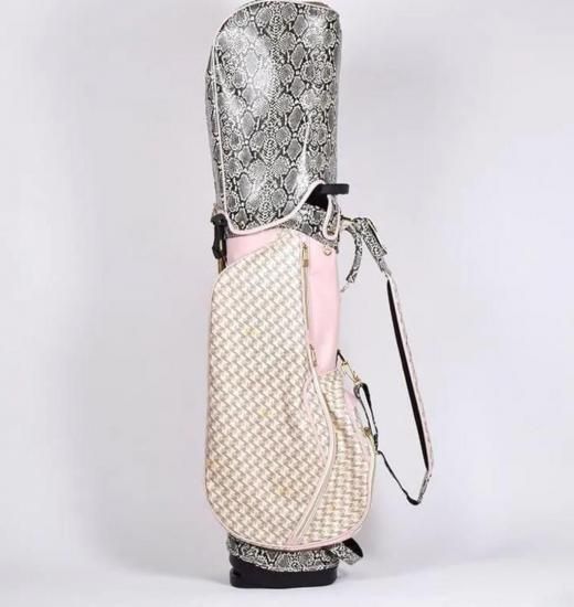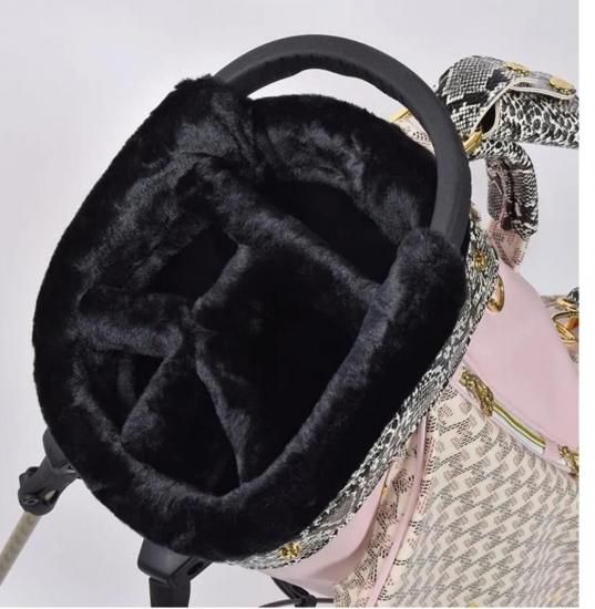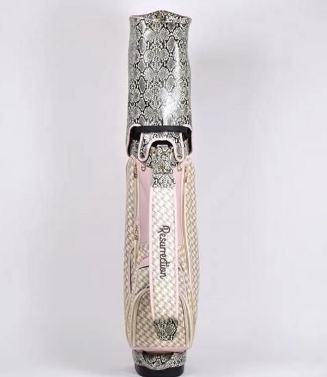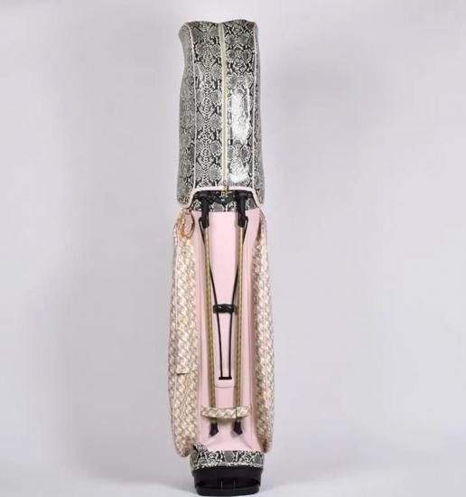華やかで力強いスタンドキャディバッグ。レザレクション柄とパイソン柄の唯一無二のコンビネーションを、ラウンドでぜひお楽しみください。