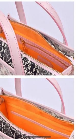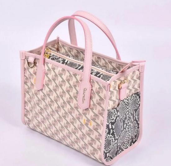 側面や天マチにあしらわれたパイソン柄が、さりげなく存在感を放ちます。ラウンドでも街でも、装いに華を添えるアイコンバッグです。