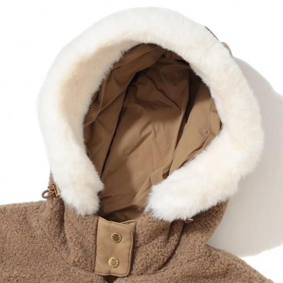 テディボアフーデッドダウンジャケット。テディベア風のボアフリースを使用した機能性抜群の防寒アイテム。