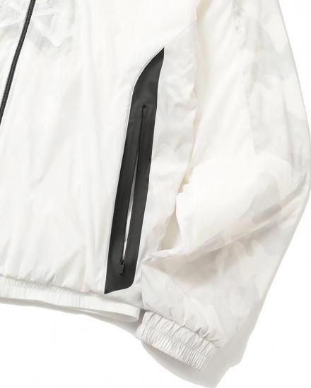フロントのブランクスカルロゴが象徴的なカモフラージュパターンとソリッドコンビの機能性ジャケット。