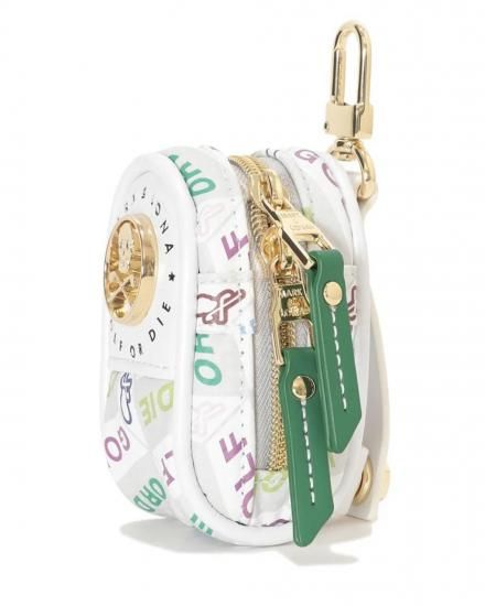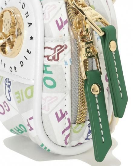 マルチカラーのレターグラフィックで構成されたジオメトリックパターンが目を引くボールポーチ。