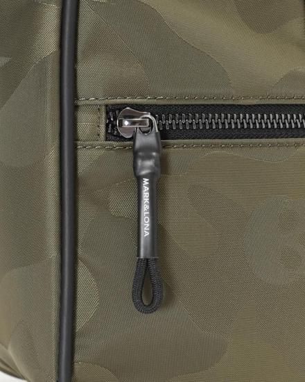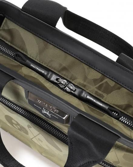 ブランドのシグニチャーであるスカルカモフラージュパターンが際立つカートバッグ。CORDURA®ナイロンとシンセティックレザーのコンビネーションで耐久性に高級感をプラスしたデザイン。