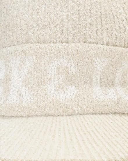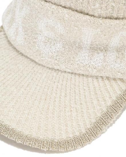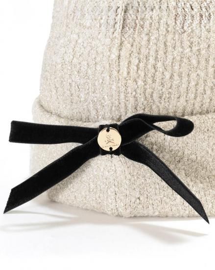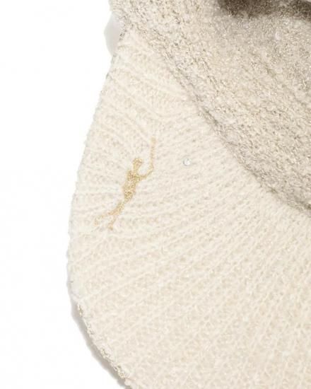 ・繊細なウール糸をベースに、スパンコールヤーンとラメ糸を引き揃えて編み上げたツバ付きキャップデザイン